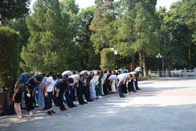 在實景黨課環節,全體學員前往金寨紅軍廣場接受紅色教育。大家拾級而上,步行至革命烈士紀念碑前肅立,舉行向革命烈士紀念碑敬獻花籃儀式,并深深三鞠躬,表達對革命烈士的深切緬懷和無限敬仰。在革命烈士紀念碑下,全體黨員在夏勁松的帶領下,面對鮮豔的黨旗重溫入黨誓詞。大家懷着萬分崇敬的心情,跟随講解員依次參觀了金寨紅軍紀念堂、紅軍烈士陵園、金寨縣革命博物館、洪學智将軍紀念館等。通過近距離聆聽革命先輩的感人故事,實地接受純潔黨性的紅色教育,大家汲取了不忘初心的力量,收獲了繼續前行的激情和動力。
