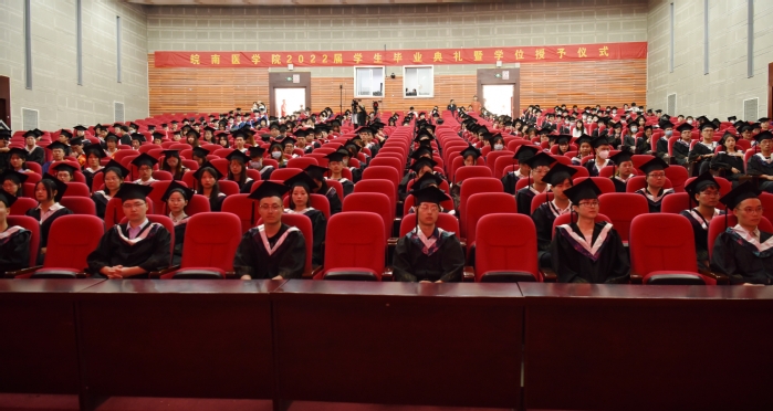 廖聖寶發表了飽含深情、富有哲理的講話。他首先代表學校向圓滿完成學業的全體畢業生表示最真誠的祝賀,向一直關懷幫助同學們成長成才的師長、家人及朋友表示由衷的感謝。他指出,同學們是特别的一代,身處“兩個一百年”的交彙點,見證百年輝煌,領略百年風華,與“百年”相遇,與時代同行,用行動展現了“恰同學少年,風華正茂”的青春風采,踐行了“請黨放心,強國有我”的铮铮誓言。廖聖寶提出三點殷切期望:一是堅定理想信念,争做初心使命的積極守護者。青年的理想信念關乎國家未來,要牢記習近平總書記的教誨,大力弘揚愛國主義精神,心懷“國之大者”,讓青春在“為中國人民謀幸福,為中華民族謀複興”的過程中綻放異彩。二是加強道德修養,争做仁心仁術的積極實踐者。國無德不興,人無德不立,要不斷錘煉品德修為,自覺踐行社會主義核心價值觀,牢記“精醫、尚德、求實、自強”的校訓,帶頭倡導向上向善社會風氣、塑造社會文明新風尚,争當正能量的倡導者、新風尚的踐行者。三是擦亮青春底色,争做民族複興的積極推動者。青春由磨砺而出彩,人生因奮鬥而升華,要大力弘揚科學精神、增長知識才幹,解放思想、開拓創新,砥砺奮鬥、攻堅克難,把平凡的崗位作為成就人生的舞台,彰顯青春應有的闖勁、銳氣和擔當。講話最後,廖聖寶勉勵所有畢業生同學“好風憑借力,送我上青雲”,隻要“踔厲奮發、笃行不怠”,就一定會留下一串屬于我們自己的铿锵足迹,創造無悔的人生。