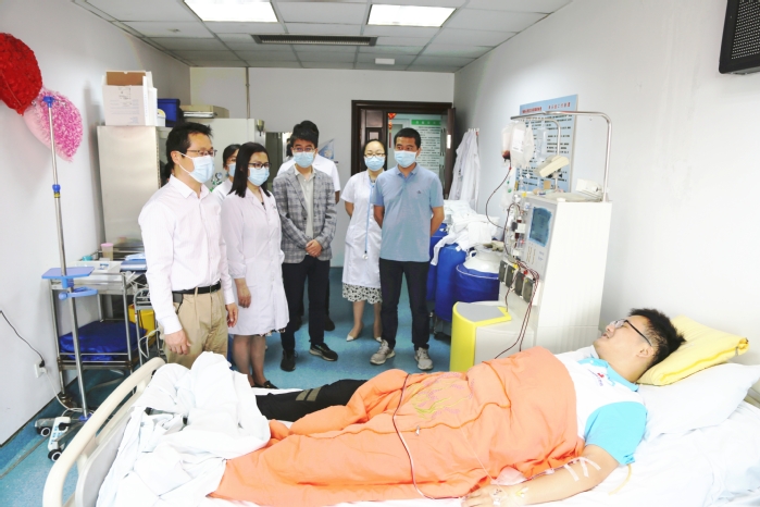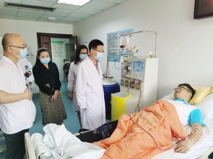 在錢勇捐獻期間,學校領導多次關心關懷并詢問情況。捐獻當天,研究生學院黨委書記、院長劉曉平和弋矶山醫院院長朱向明等來到弋矶山醫院血液内科看望正在捐獻造血幹細胞的錢勇同學,對他的愛心善舉給予了高度贊揚。