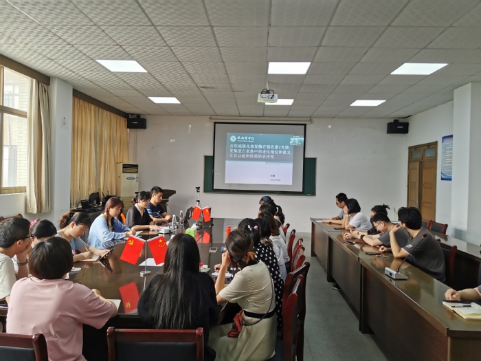 徐蕾教授由淺入深、循序漸進、娓娓道來,把自己近2年在《Molecular Biology and Evolution》(IF=16.24)發表題為“Identification of a Novel Class of Photolyases as Possible Ancestors of Their Family”和在《Nucleic Acids Research》(IF=17)發表題為“Identification and characterization of a prokaryotic 6-4 photolyase from Synechococcus elongatus with a deazariboflavin antenna chromophore”的論文主要研究内容進行了報告。徐蕾教授從研究過程中發現問題、提出問題,再到如何進一步解決問題進行了詳細闡述,報告了SPL光修複酶的發現,到證實SPL蛋白是CPF家族的真正祖先,再到進一步發現并命名新的光修複酶 SePhrB。此外,徐蕾教授還分享了自己投稿以及指導研究生和本科生的經驗,為大家今後的科研、教學工作提供了很好借鑒。會後,與會老師與徐蕾教授進行了熱烈讨論和交流。