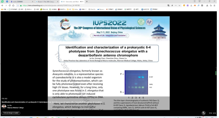 在副院長鄭蘭榮教授的指導下,我校生理學省級學術與技術帶頭人、中國生理學會常務理事汪萌芽教授和校生物學一流學科負責人鄭超教授精心組織生理科學團隊共77人參加會議,提交英文論文摘要19篇并作交流,其中研究生18人提交英文摘要8篇,“啟明星”小組成員46人提交英文摘要8篇,均以英文牆報展示的形式參加了線上學術交流,部分牆報還被遴選參加會議組織的牆報專題讨論,取得了良好的國際交流效果。同時,鑒于我校積極組織專業教師和本碩學生參加會議,特别是組織本科生參會并提交出突出成果,我校團隊在中國生理學會常務理事會會議上受到表揚。