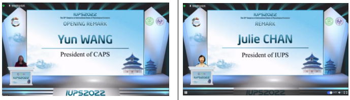 中國生理學會理事長王韻和IUPS主席Julie Chan緻辭